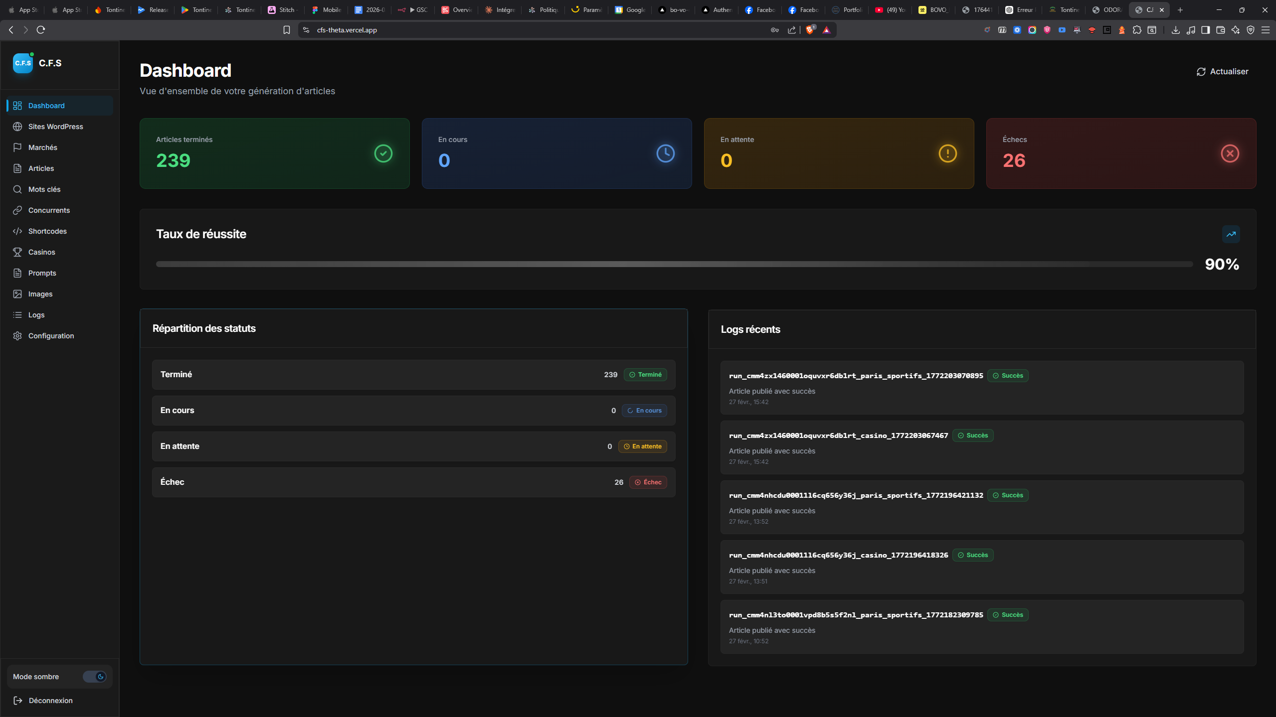 Nous avons développé un dashboard de gestion web performant (sous Next.js) permettant aux experts SEO d'orchestrer leurs campagnes.